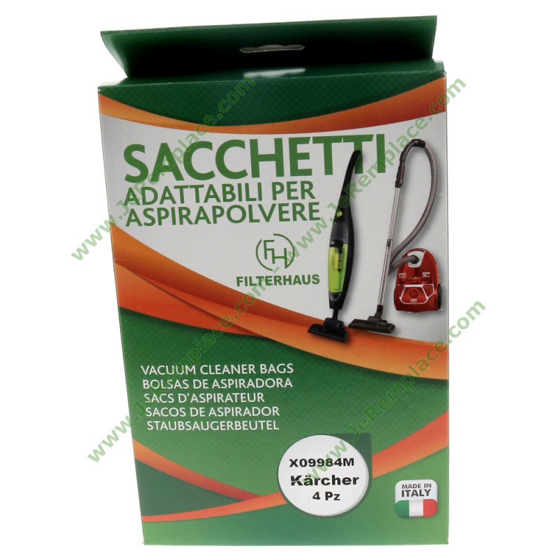 Ce lot de 4 sacs à poussières en microfibre est proposé en version alternative à la marque Kärcher, tout en respectant les caractéristiques essentielles du modèle d’origine. Il constitue une solution de remplacement fiable pour la maintenance régulière des aspirateurs de la marque.