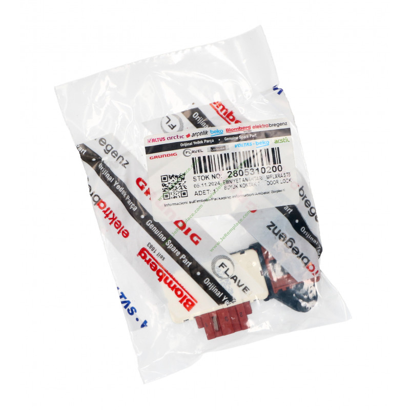 Sécurité de porte pour lave-linge compatible avec divers modèles de marques telles que BEKO, SABA, CONTINENTAL EDISON, FAR, ESSENTIEL B, AYA, ALTUS, LISTO. Référence pièce : 2805311700. Ce verrou est conçu pour garantir une fermeture sûre de la porte du lave-linge et éviter toute ouverture accidentelle pendant le cycle de lavage. Installation facile et remplacement rapide.