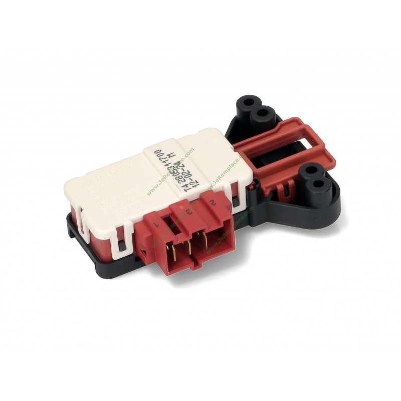 Cette sécurité de porte est une pièce de remplacement essentiel pour assurer le verrouillage correct de la porte de votre lave-linge durant les cycles de lavage. Conçue pour être compatible avec une large gamme de marques, elle est idéale pour garantir la sécurité et l'efficacité de votre appareil.