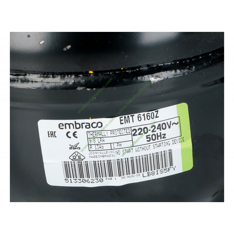 Compresseur Embraco EMT6160Z R134a 1/4 HP - Idéal pour des applications de réfrigération moyenne et haute pression, ce compresseur de haute qualité assure une performance optimale avec un fluide R-134a. Puissance : 1/4 HP, cylindre : 6,76 cm³. Compatible avec une tension de 220-240 V. Sa conception robuste en fait un choix fiable pour divers systèmes de réfrigération.