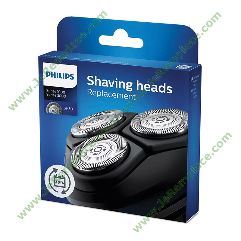Ce lot comprend 3 têtes de rasage Philips SH30/50 destinées aux rasoirs des gammes Series 1000 (S1xxx), Series 2000 et Series 3000 (S3xxx), incluant le modèle Star Wars SW3700. Équipées de la technologie ComfortCut avec 27 lames auto-affûtées, ces têtes sont conçues pour assurer un rasage régulier et protéger la peau. Le remplacement est préconisé tous les 2 ans pour maintenir les performances initiales de l'appareil. Référence produit : SH3050. Marque : Philips. Code barre : 8710103767091.